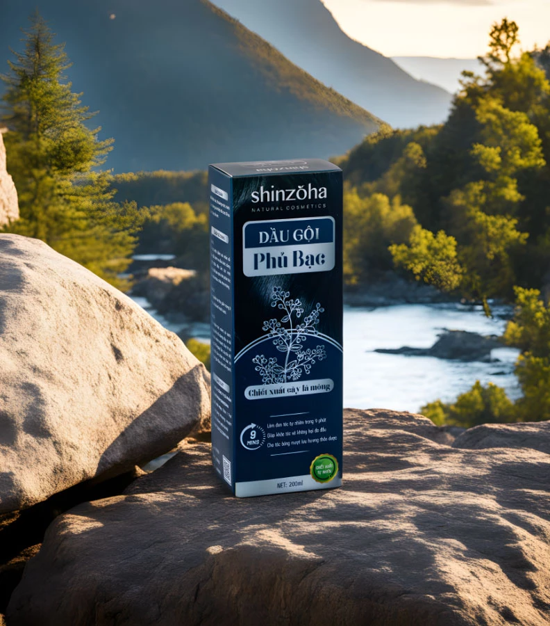 - Lắc đều chai dầu gội phủ bạc đen tóc.